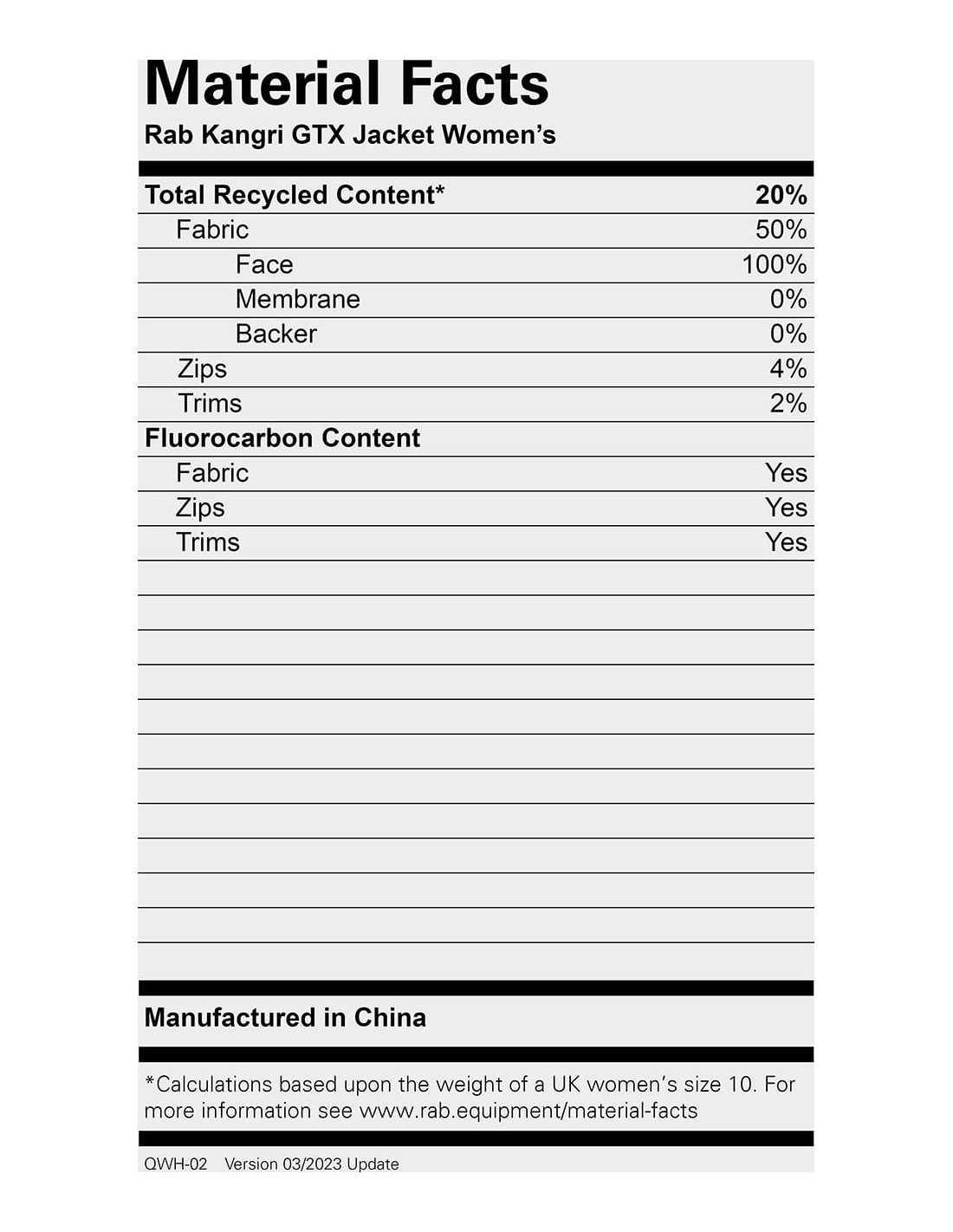 - peso : 468g/16.5oz (tamaño 10)