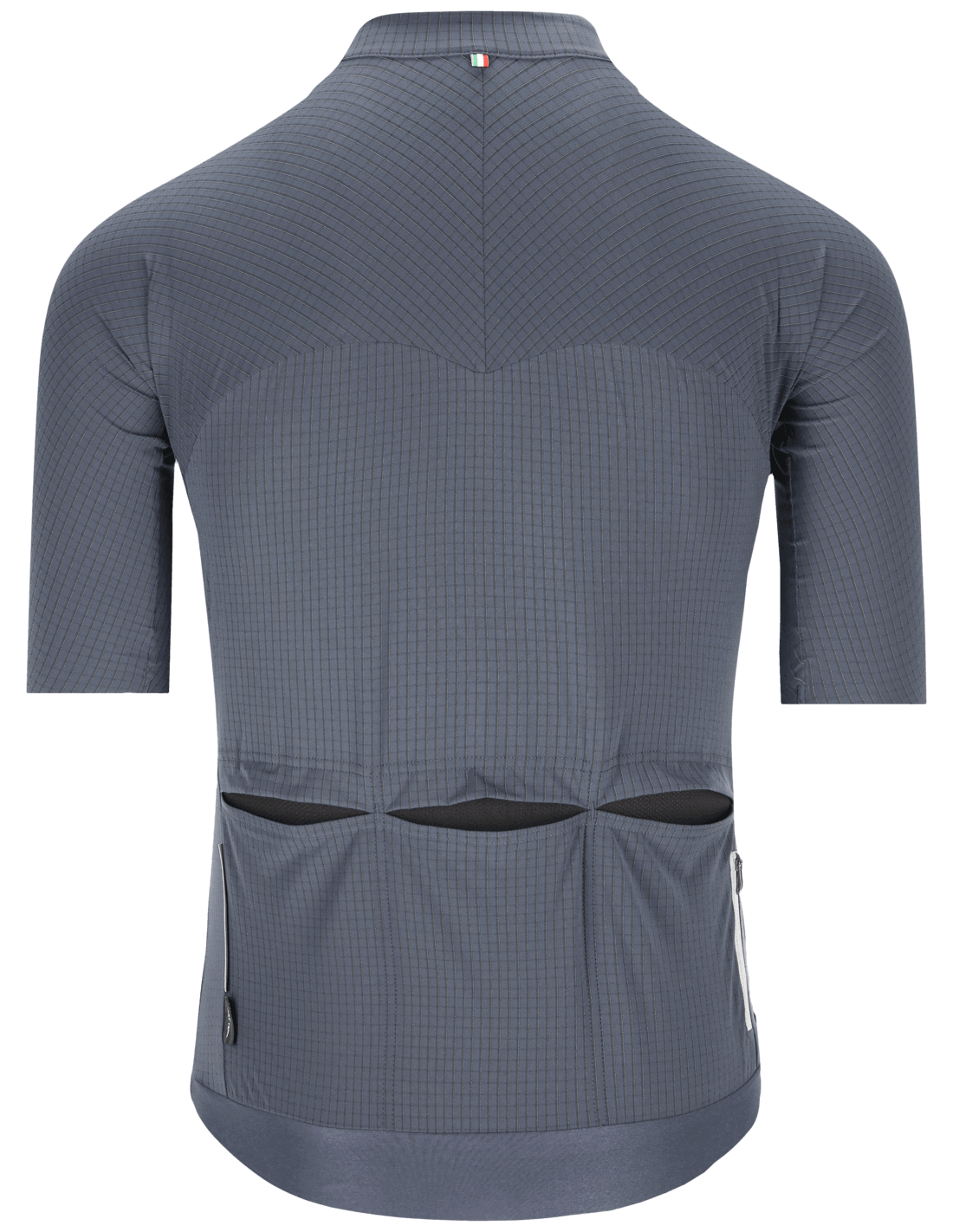 The Q36.5 Dottore Pro Cycling Jersey for men is tailored for those who appreciate minimalist design, featuring an innovative sleeve cut that does away with shoulder seams to deliver a flawless fit when cycling. Crafted from a 3D-woven fabric interwoven with silver threads, this jersey ensures excellent thermoregulation and rapid drying capabilities. The fabric's texture is optimized for aerodynamics, offering significant benefits to cyclists traveling at speeds ranging from 40 to 59 km/h.