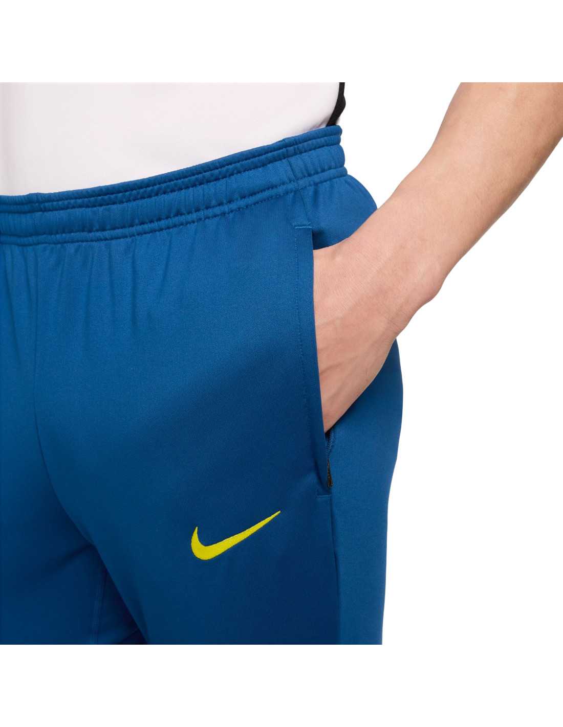 Los pantalones de fútbol Nike Strike SE FC Barcelona para hombre están diseñados para ofrecer un rendimiento superior en el campo. Confeccionados con la tecnología Nike Dri-FIT, estos pantalones ayudan a expulsar la humedad de la piel para mantener la frescura y la comodidad durante el juego. Las cremalleras en los bajos de las piernas permiten cambiarse de calzado con facilidad, mientras que los bolsillos con cremallera ofrecen un almacenamiento seguro para tus pertenencias esenciales. Presentan una cintura elástica con cordón interno para un ajuste personalizado.