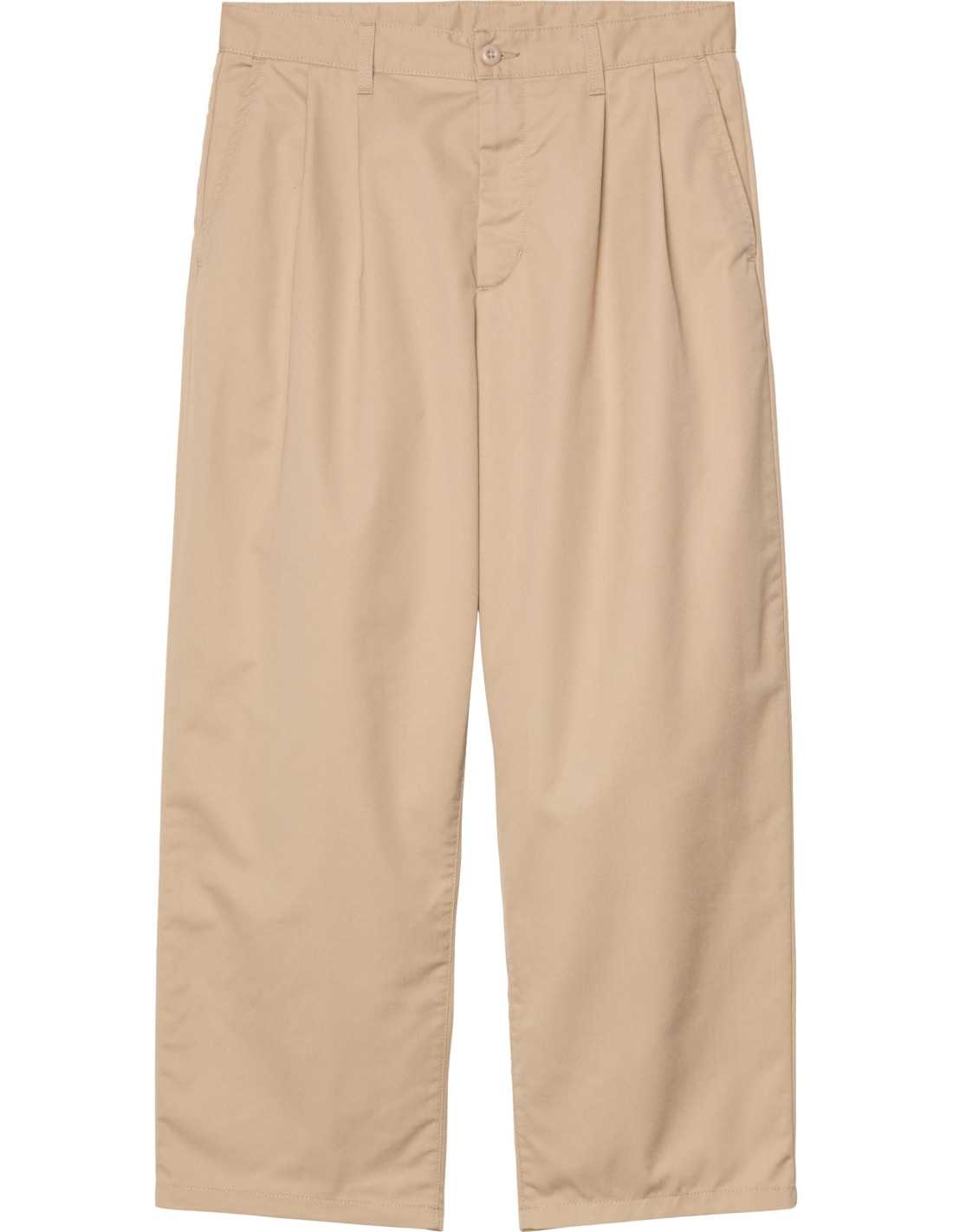 El Pantalón Evan de Carhartt WIP está diseñado en un corte suelto y cónico, confeccionado con un resistente tejido de sarga de policotton de peso medio. Este pantalón presenta pliegues dobles al frente que ofrecen un ajuste más espacioso en las piernas, ideal para quienes buscan comodidad sin sacrificar el estilo. Además, cuenta con una etiqueta cuadrada tejida en la parte trasera, que le da un toque distintivo y moderno.