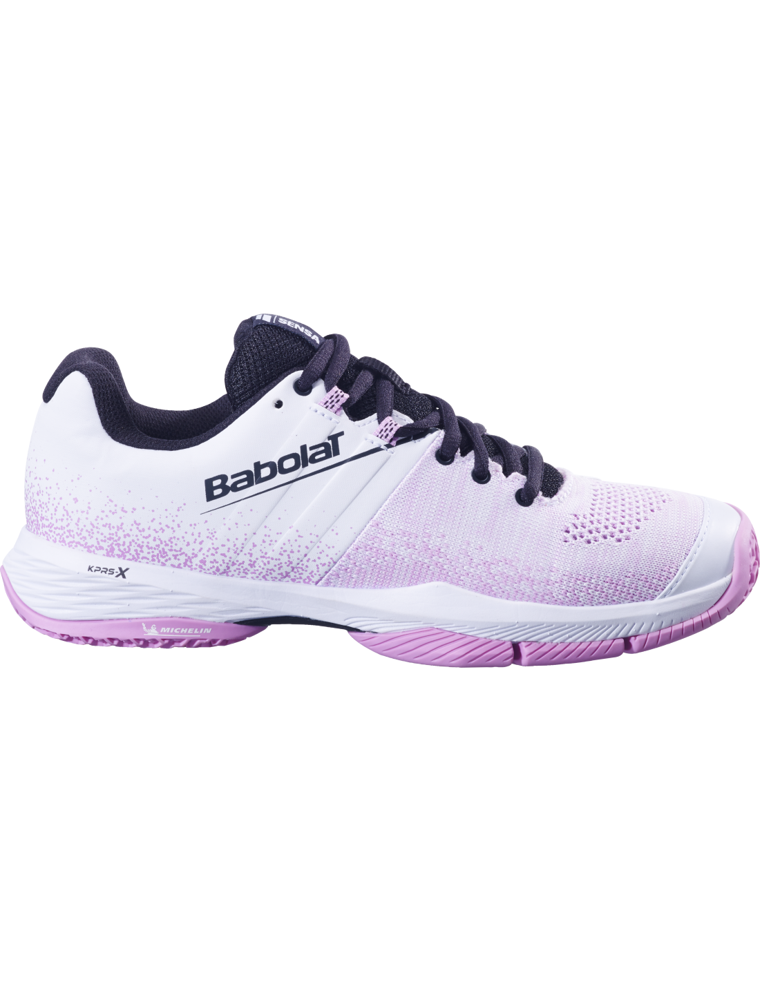 El zapato de padel Sensa para mujer de Babolat está diseñado para ofrecer la máxima seguridad y comodidad en la cancha, sin sacrificar el estilo. Este calzado se enfoca en proporcionar un soporte excepcional y una protección inigualable, asegurando que cada paso sea firme y seguro. Con un diseño 100% dedicado al padel y a la mujer, combina durabilidad y flexibilidad para un rendimiento superior, acompañándote en cada jugada con un toque de estilo.