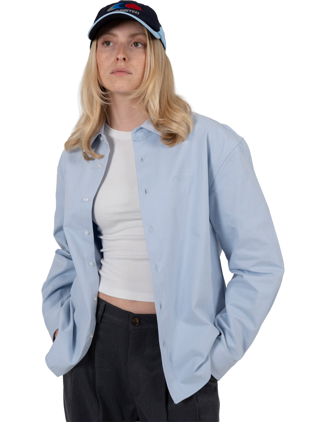 The Dress Shirt Blue de Prohibited est une chemise de ville unisexe qui offre un design légèrement surdimensionné et de coupe raccourcie, idéal pour ceux qui recherchent un style moderne et sophistiqué. Ce modèle dispose d'un bouton à chaque extrémité du col et d'une broderie tonale sur la poitrine gauche, ajoutant une touche d'élégance discrète. Confectionnée à 100% en coton, cette chemise garantit confort et respirabilité tout au long de la journée.