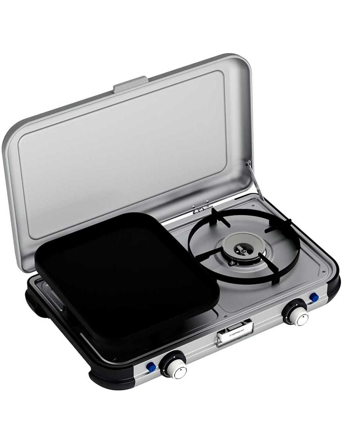 Le nouveau Camping Kitchen 2 Grill & Go est un compagnon compact et polyvalent pour cuisiner et griller. La cuisinière à 2 brûleurs avec 2 grilles de cuisson et plaque chauffante interchangeables offre la flexibilité nécessaire pour répondre à tous vos besoins en matière de préparation des aliments. Que vous partiez en voyage d'aventure ou que vous planifiiez un déjeuner relaxant avec votre famille et vos amis dans le confort de votre maison, Camping Kitchen 2 Grill & Go CV a la capacité de répondre à tous les besoins des passionnés de grillades.