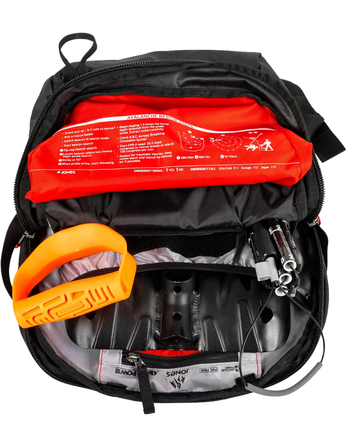 • Espace de rangement : Compartiment pour outils d'avalanche