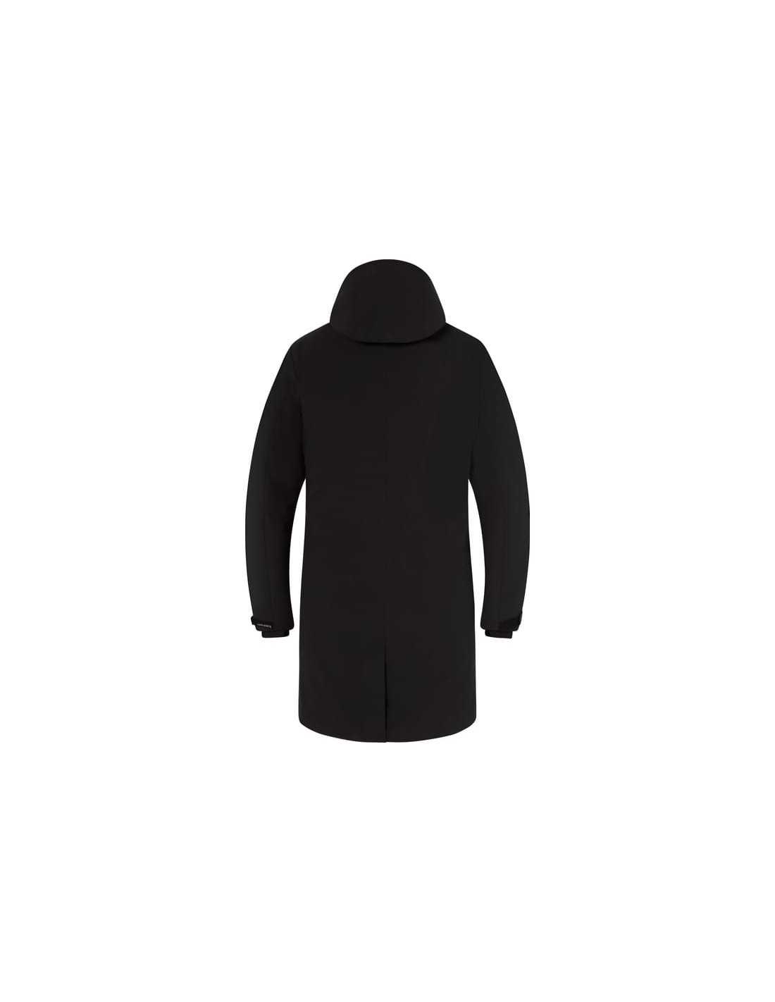Fermeture éclair bidirectionnelle étanche. Poches doublées en polaire. Fermetures éclair de ventilation sous les bras. Capuche réglable et amovible.