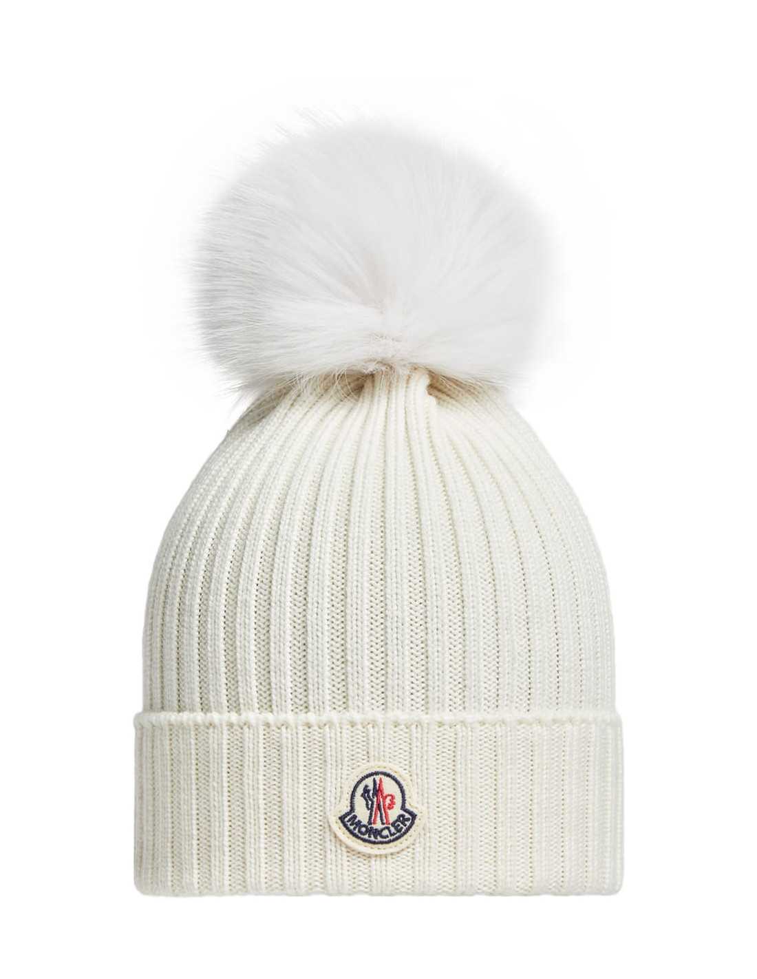 MONCLER WOOL BEANIE WITH FAUX FUR POM POM