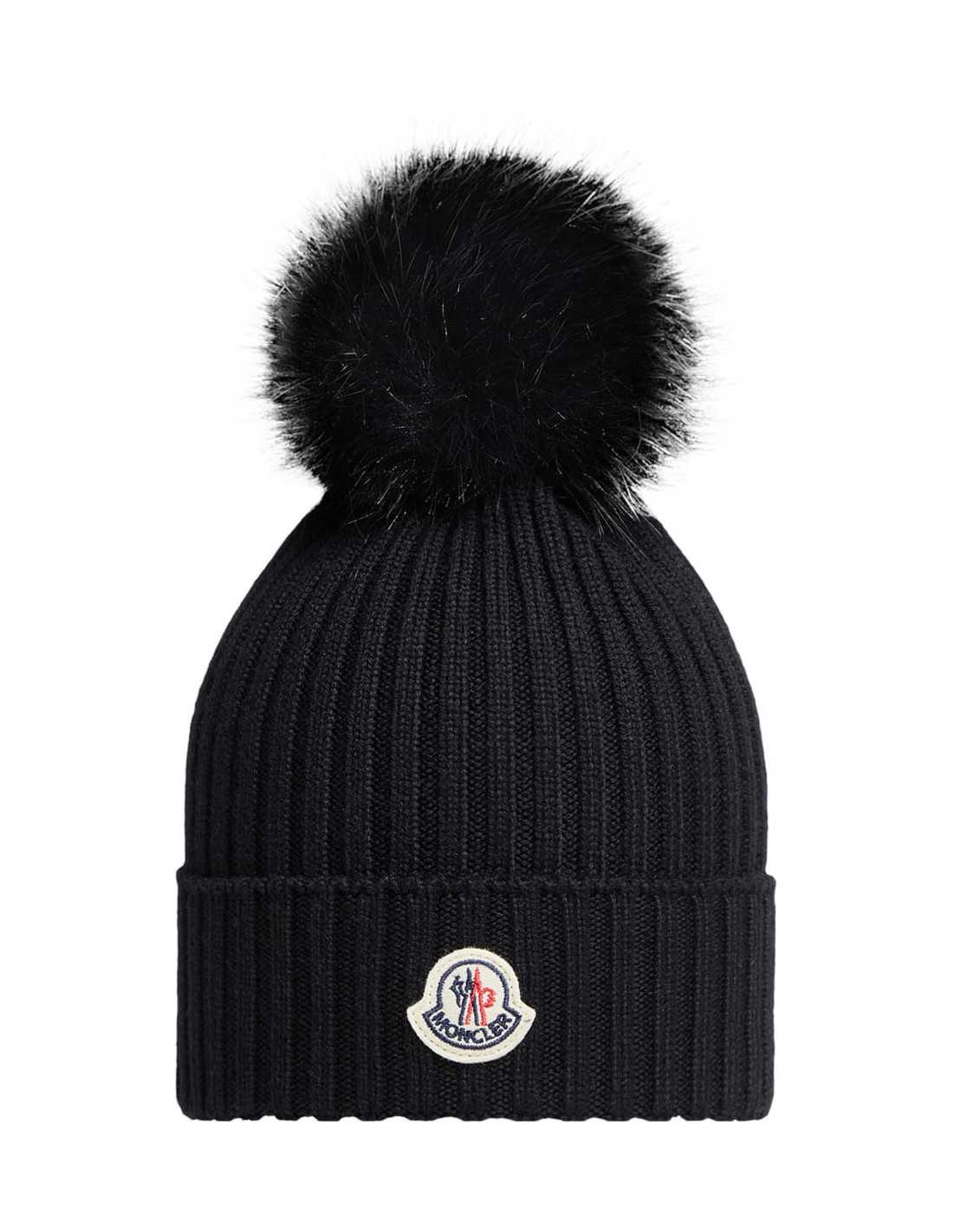 MONCLER WOOL BEANIE WITH FAUX FUR POM POM