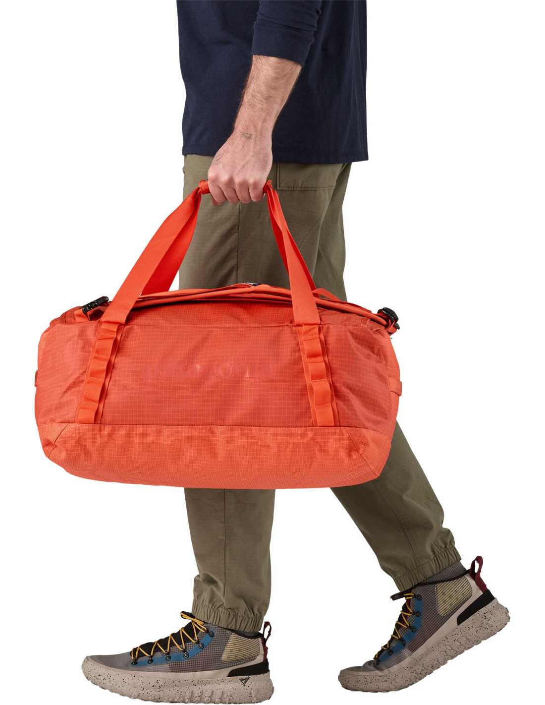 La Borsa da Viaggio Black Hole® Duffel 40L di Patagonia è ideale per carichi leggeri e fughe del fine settimana. Offre la leggendaria performance che caratterizza i prodotti Black Hole®, facendo al contempo un grande passo verso la riduzione dell'impatto ambientale grazie al suo tessuto esterno, fodera e cinghie completamente riciclati. Inoltre, incorpora un laminato di TPU riciclato con finitura opaca. Questa dimensione di borsa soddisfa la maggior parte dei requisiti di bagaglio a mano di compagnie aeree e treni. Realizzata in uno stabilimento con Certificazione del Commercio Equo e Solidale, è estremamente durevole e resistente alle intemperie.