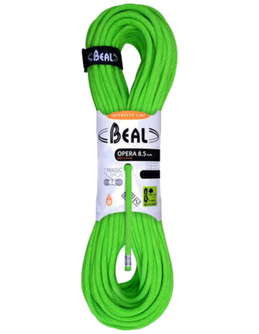 - La corda singola più leggera: Con il suo peso di 48 grammi al metro, OPERA 8.5 è la corda singola più leggera e sottile sul mercato. Il primo a pesare meno di 50 grammi. Vero concentrato di tutto il know-how BÉAL, combina diverse innovazioni tecnologiche per offrire una corda resistente, ultraleggera e ultrafluida. Con la sua bassa forza di impatto, OPERA 8.5 è una corda progettata per gli scalatori più esigenti, pur rimanendo versatile. Infatti è certificata anche come corda doppia e corda gemella.