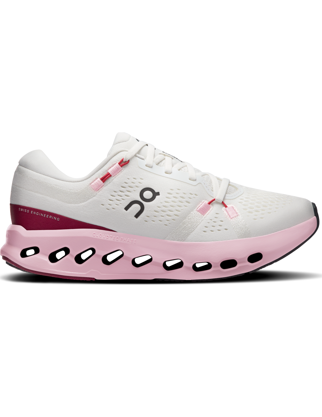 Le scarpe da corsa Cloudsurfer 2 di ON per donna sono progettate per offrire un'esperienza di corsa fluida e piacevole. La loro tomaia in mesh traspirante è realizzata con poliestere riciclato, garantendo una ventilazione ottimale e una calzata sicura grazie alle sovrapposizioni ricamate. Queste scarpe sono prive di Speedboard®, optando invece per un sistema di ammortizzazione strutturale, CloudTec Phase®, che offre la massima sensazione di morbidezza. Utilizzando la tecnologia FEA, sono state effettuate simulazioni e analisi di diversi design di suola per trovare la geometria ottimale che migliora la durabilità. Ideali per le corse quotidiane, queste scarpe non sono impermeabili e forniscono una sensazione di guida eccezionale.