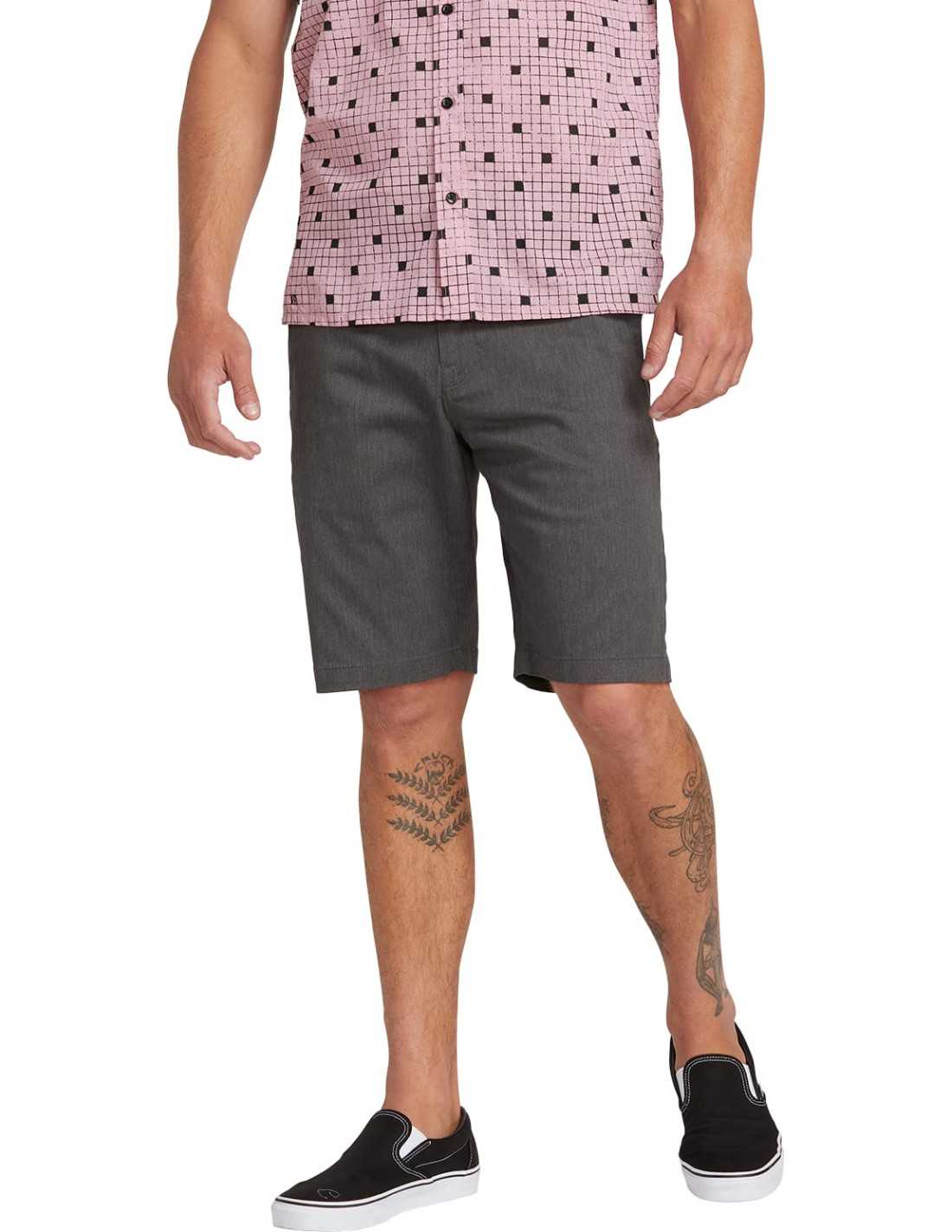 Lo sport incontra la strada in questi moderni pantaloncini in cotone elasticizzato e poliestere. Il tessuto traspirante prelavato unisce funzionalità e stile casual con cucitura interna da 21", stile a 5 tasche e dettagli firmati Volcom.